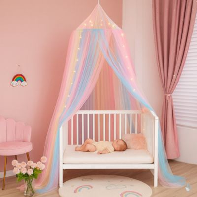 Avec ce ciel de lit aux couleurs d'arc-en-ciel, vous créez une barriÚre efficace contre ces intrus. Son voilage en polyester fin laisse circuler l'air tout en bloquant les insectes. Imaginez-vous vous glisser sous cette canopée protectrice, bercé par la douce lumiÚre filtrée à travers les teintes pastel.